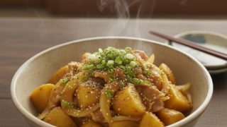 - 煮汁がほとんどなくなったら火を止め、器に盛り付けて完成。
