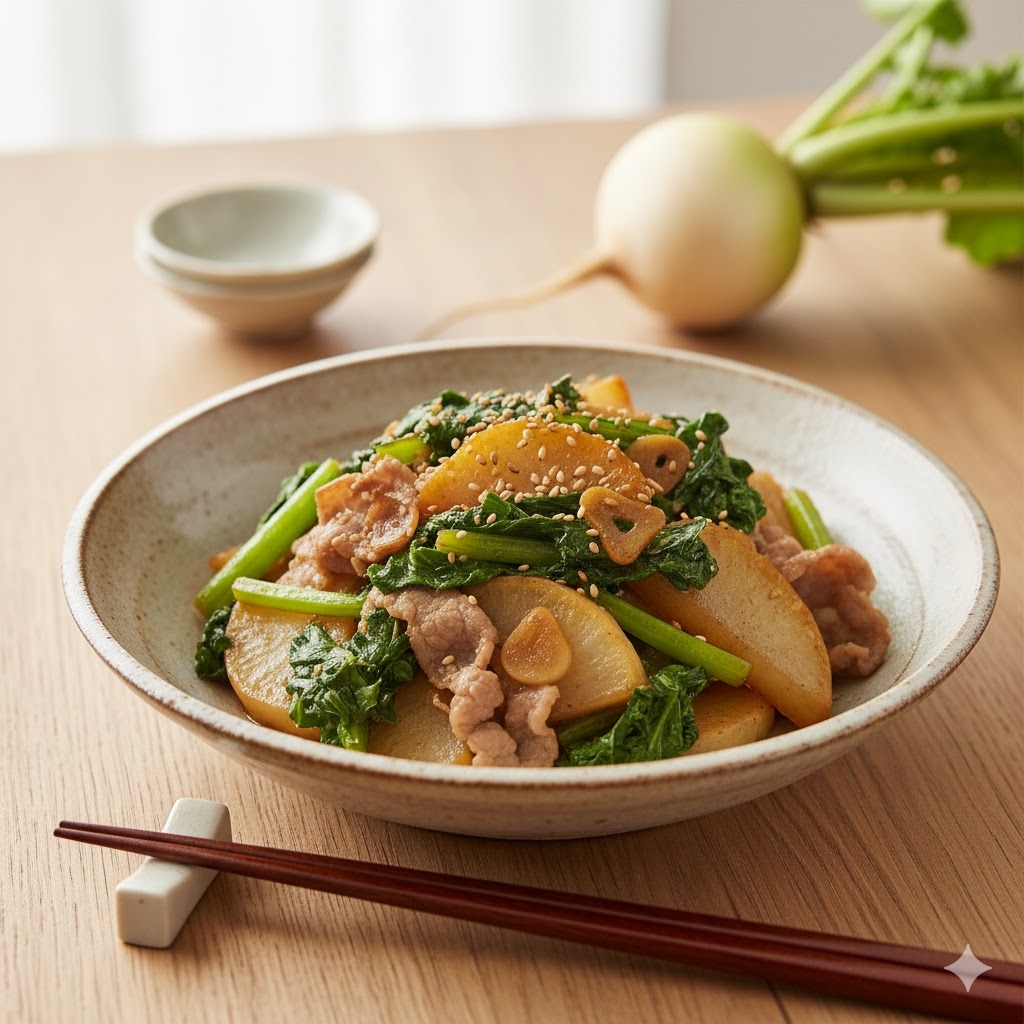 - オイスターソースで**ご飯が進む**しっかりした味付けになり、**かぶの大量消費**が進みます。