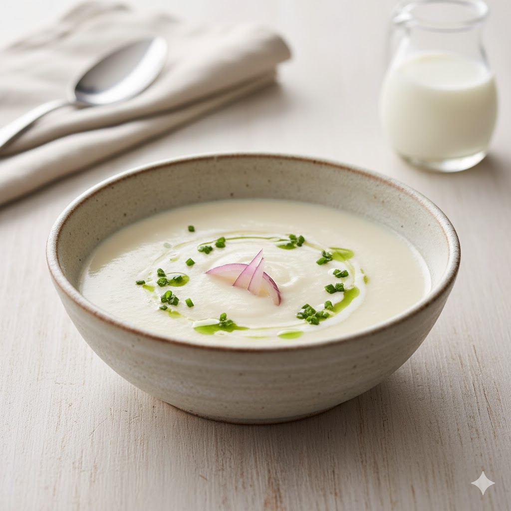 5. 牛乳を加えて混ぜ、冷蔵庫で冷やします。器に盛り付けて完成です。